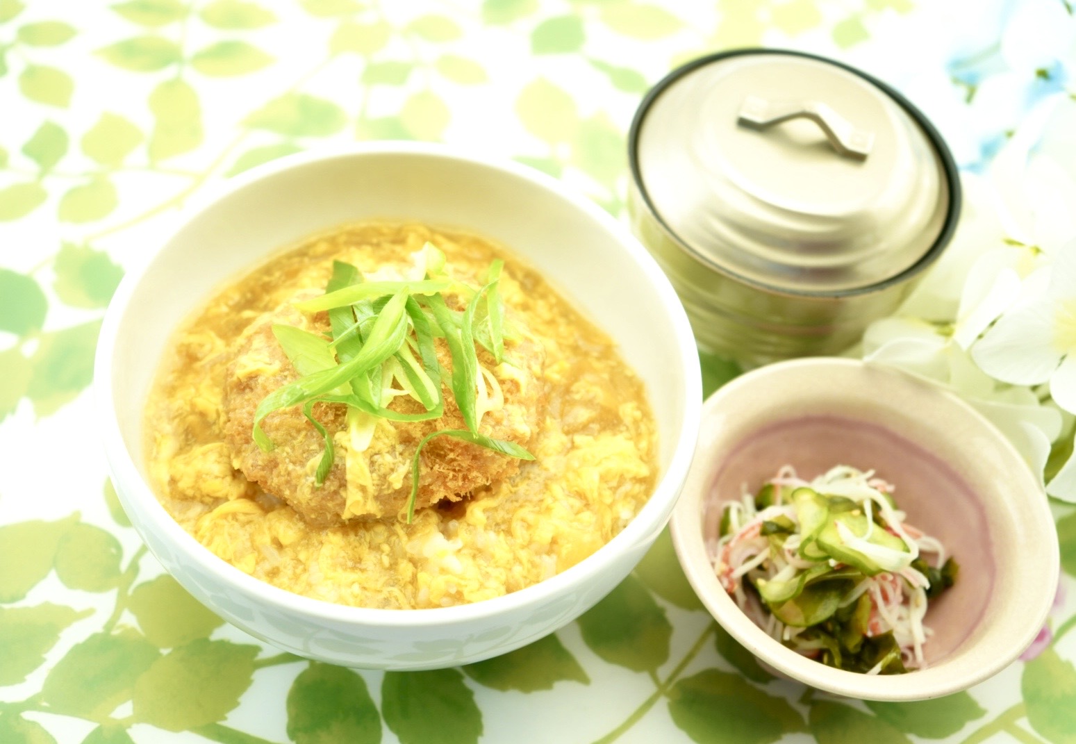 今日は、冷たいうどんと天丼、お漬物、デザートをご用意しました。