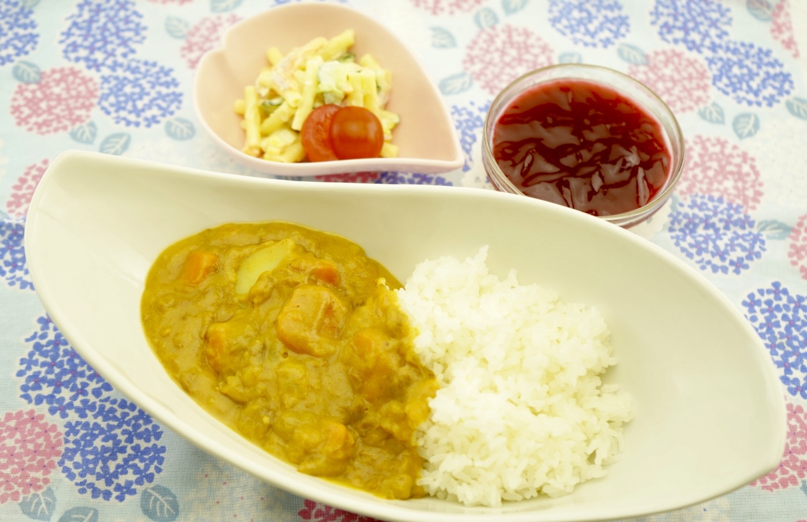 メニューは、オムライスにサラダ、シチューをご用意しました。