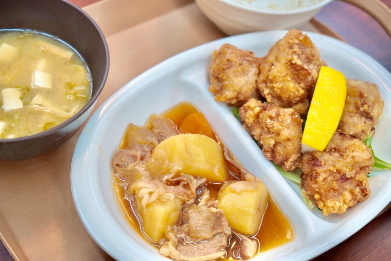 今日は、鮭のホイル焼きや肉じゃが、鶏めし、みそ汁、デザートをご用意しました。