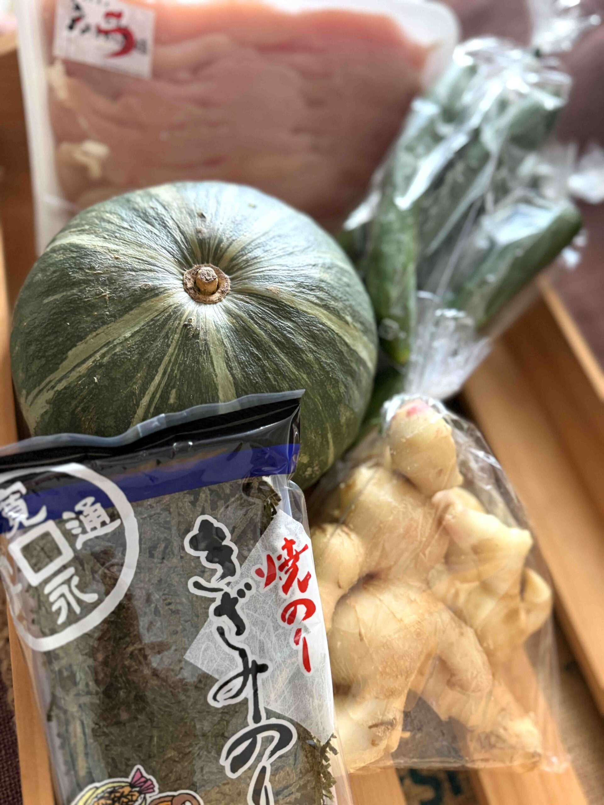 カボチャやキュウリ、鶏のささみ、海苔、ショウガはJAグル
