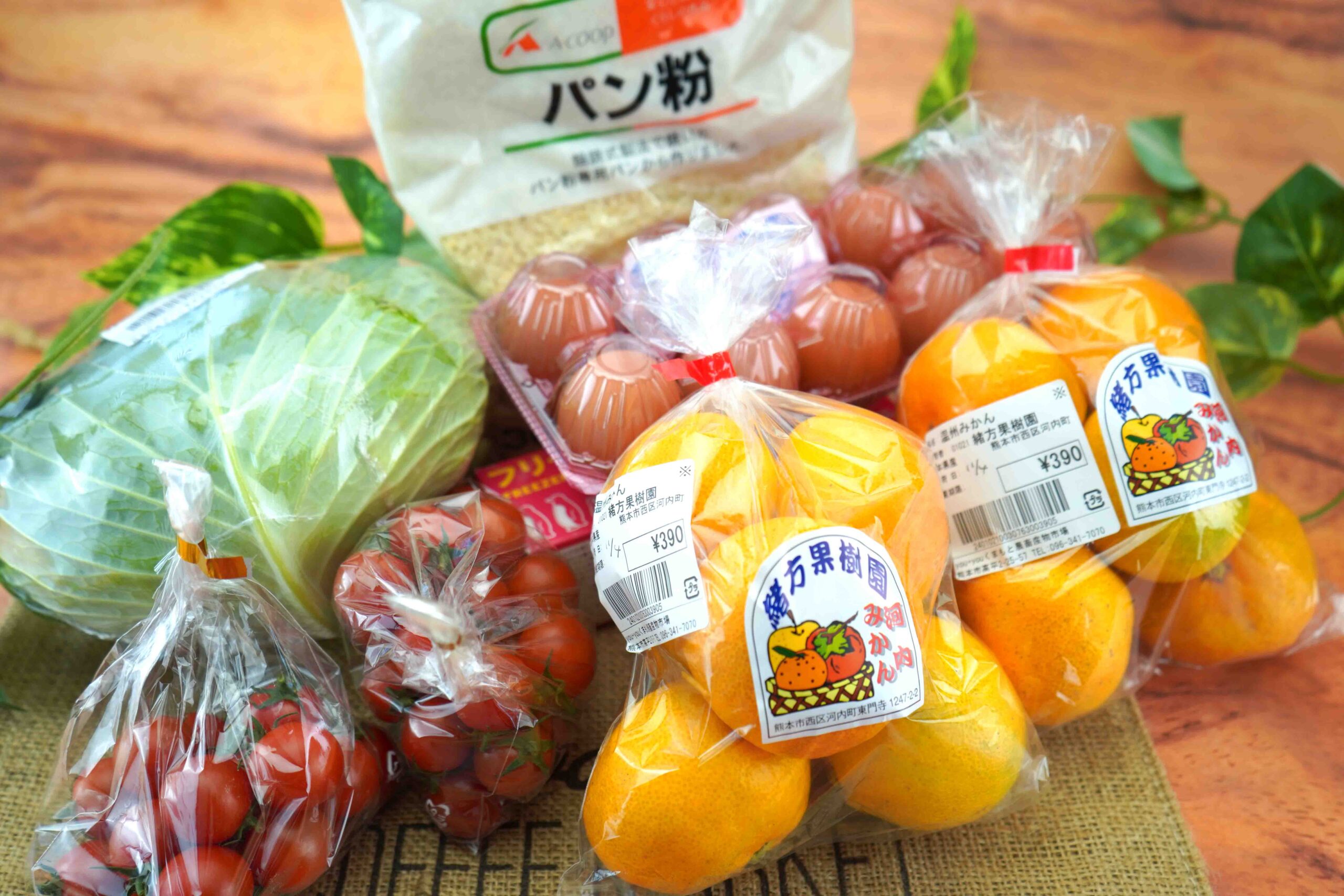 キャベツやプチトマト、ミカン、パン粉、タマゴはJAグルー